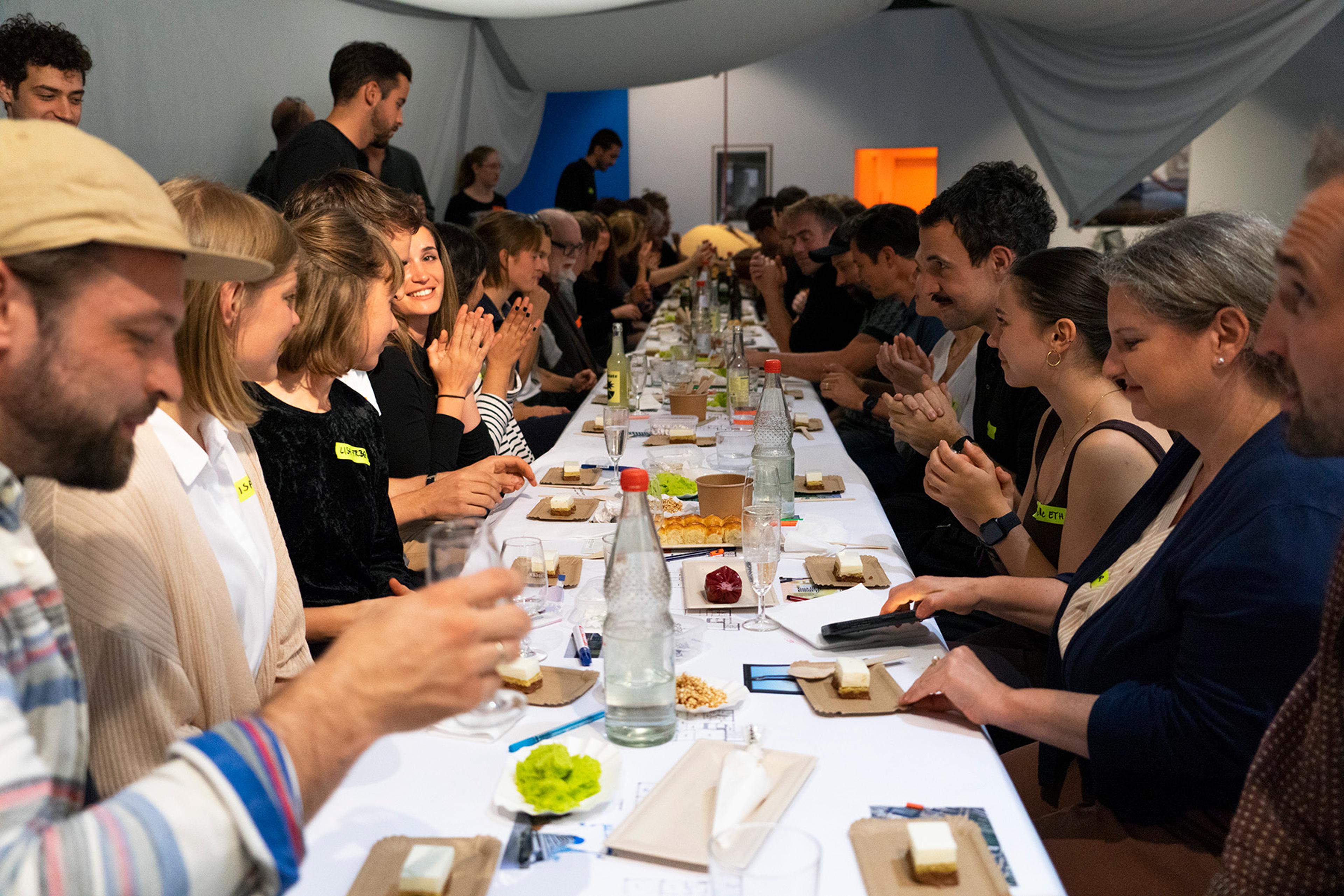 Day 4 – Perspektive Europaviertel - Curated Dinner. In the scope of the tri-national Architecture Days with this year’s topic “resources” we organized a dinner with around 60 guests, stakeholders and interested public around the topic of the Europaviertel with from prepared by HAWARA.