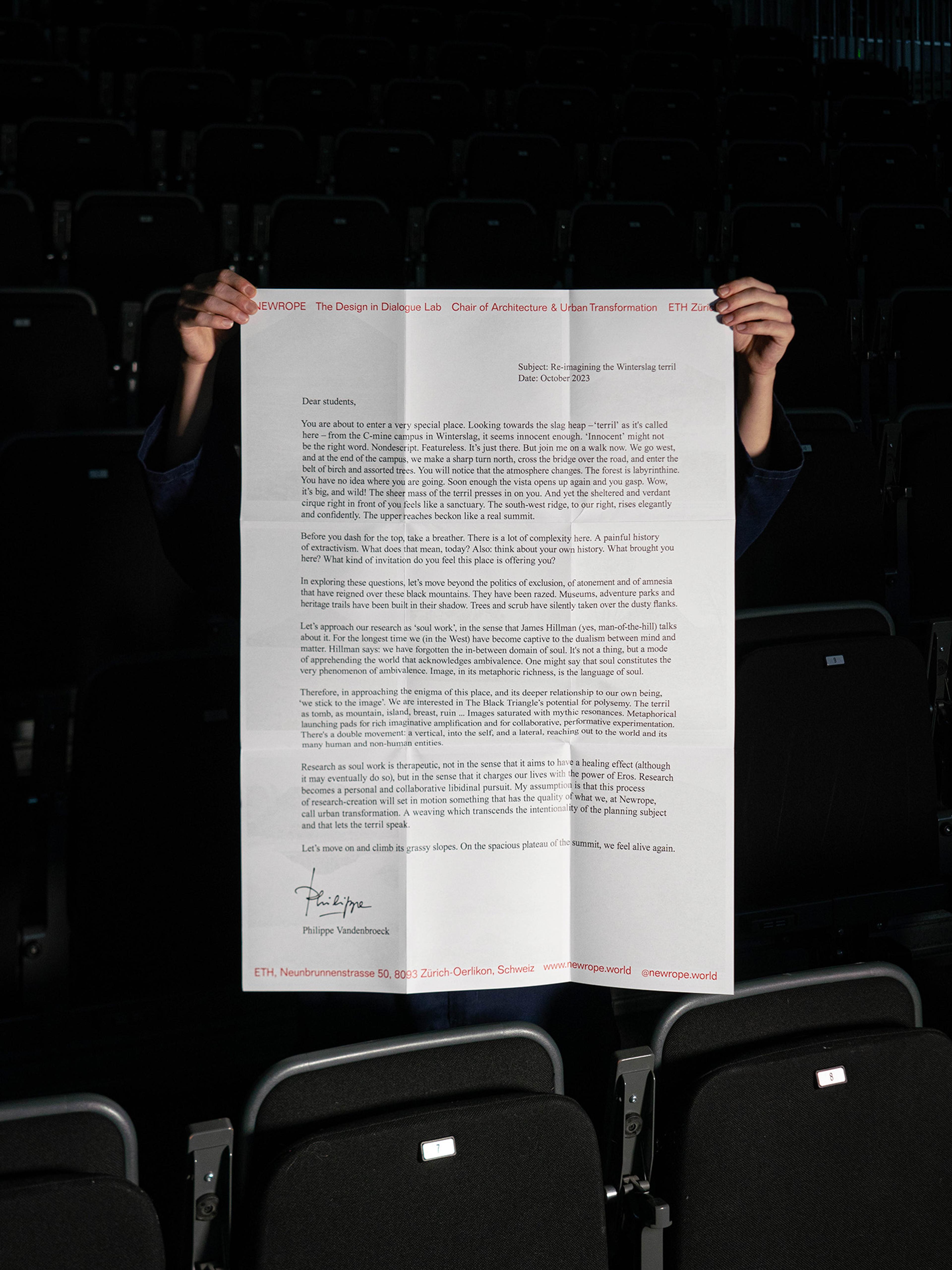In this letter from 2023, offering a prompt for Studio Winterslag, Philippe Vandenbroeck invited the students to attune themselves to the post-extraction terrain of the “terril” of Winterslag – a site he has extensively explored in his PhD research
